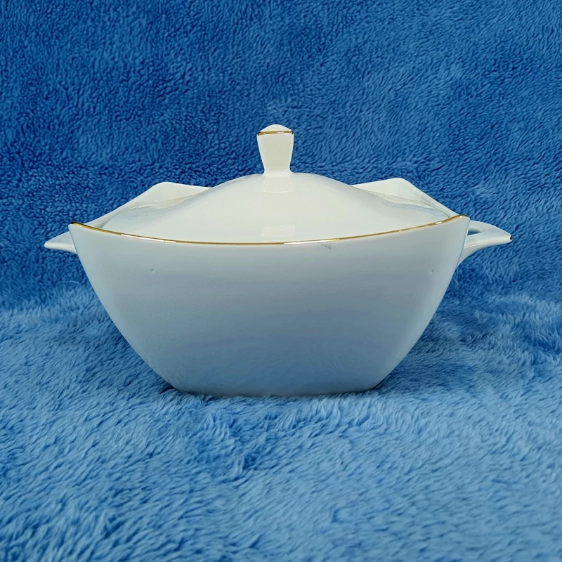 سوپ خوری درب دار چینی گرد لورین مدل دیپلمات لب طلا