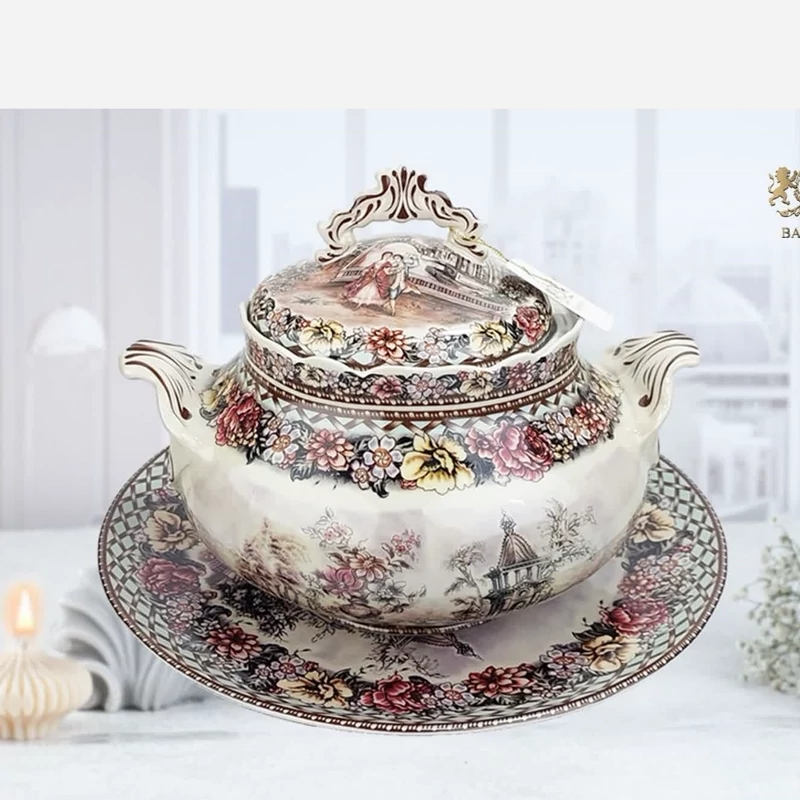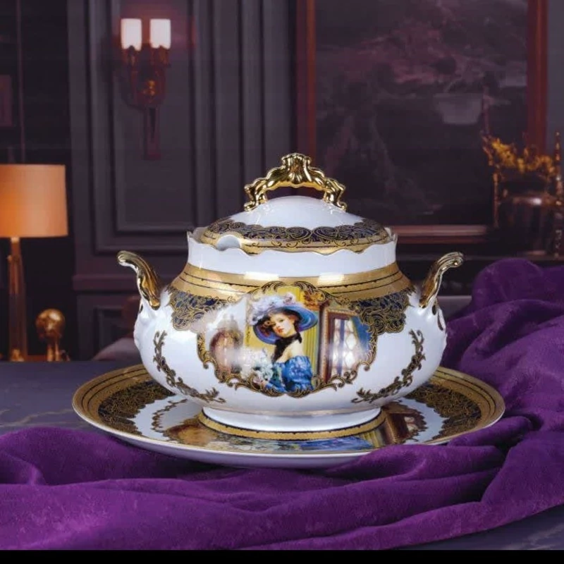 سوپ خوری درب دار چینی لورین مدل سناتور لب طلا