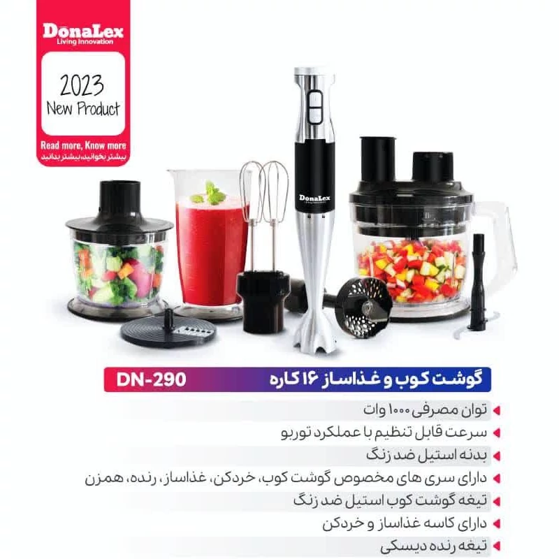 گوشت کوب و غذا ساز 16 کاره دونالکس مدل DN-290 با ضمانت 24 ماهه