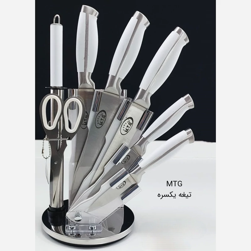 ست کارد ساطور 8 پارچه گردان کد 0019 سفید MTG با ارسال رایگان