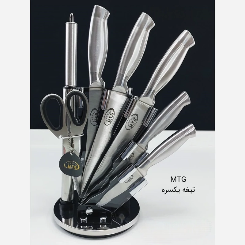 ست کارد ساطور 8 پارچه کد 0068 برند MTG نقره ای ارسال رایگان