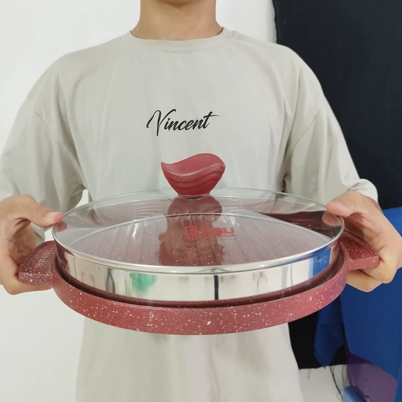 تابه گریل گرد چدن گرانیت دو رو سایز 30 برند SAMSET سام ست
