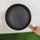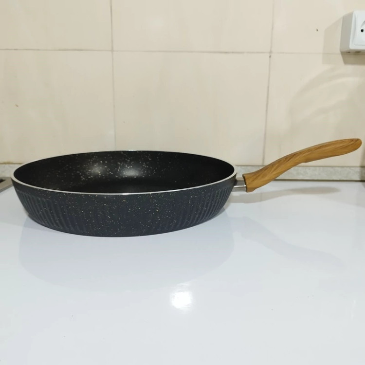 با دسته ای از جنس باکالیت نسوز که طراحی شبیه به چوب دارد و باعث زیبایی چندین برابری این تابه ی پر کاربرد شده