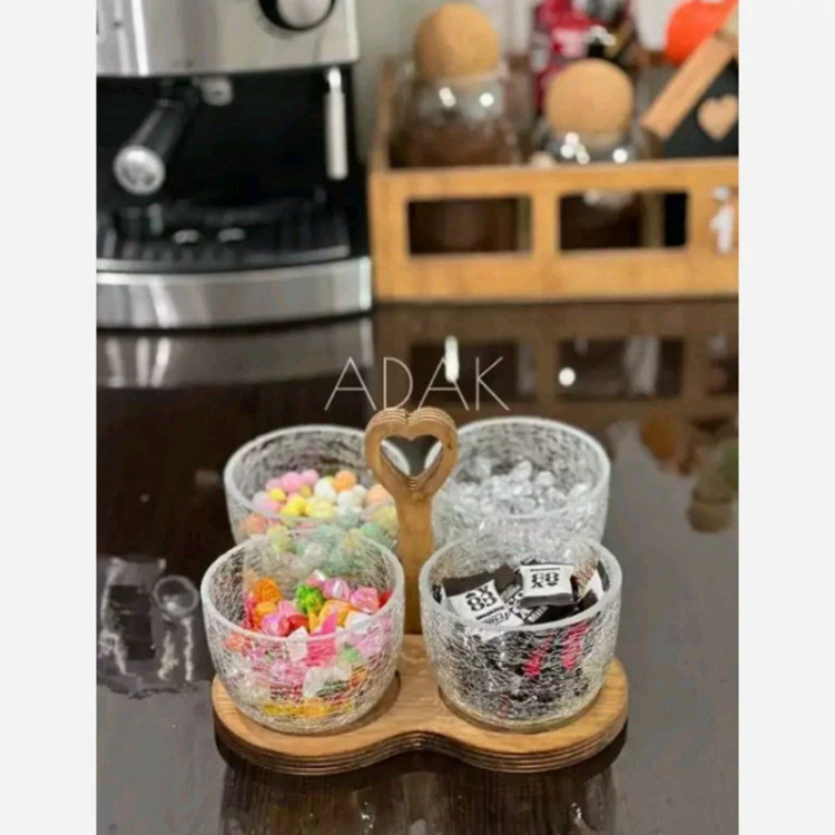 اردو خوری چوب و شیشه ترک 4خانهاردوخوری 4پیاله طرح شیشه ترک زیره چوبی