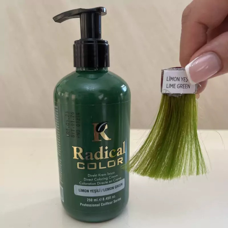 شامپو رنگ مو سبز لیمویی Lime Green رادیکال کالر حجم 250 میلی لیتر.