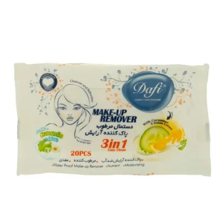 دستمال مرطوب پاک کننده آرایش دافی (Dafi) مدل 3 در 1 بسته 20 عددی