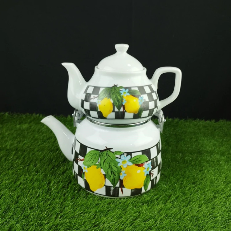 کتری و قوری لعابی 2 لیتر لومیلند مدل گلدار کد 12