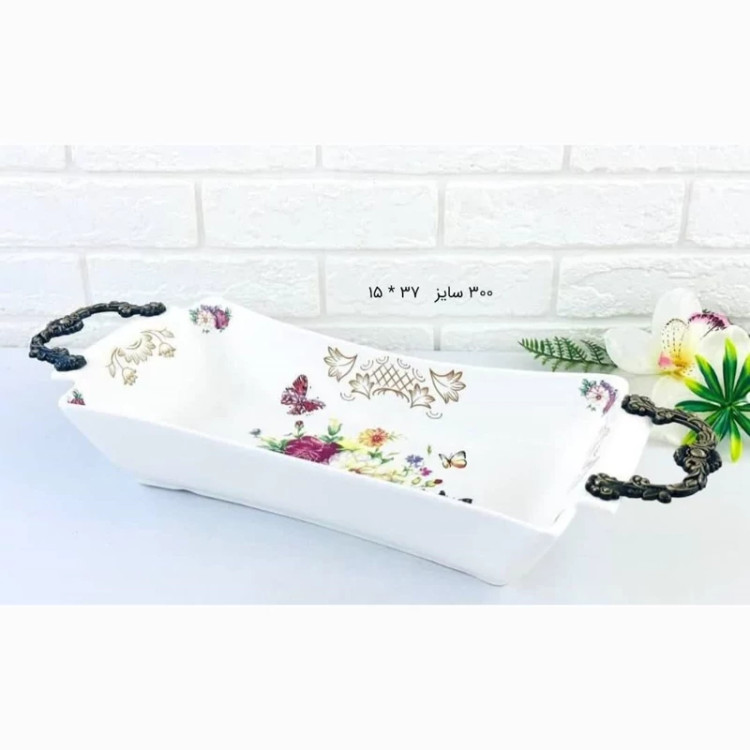 تابه مستطیل سرامیکی طرح پروانه مدل 300