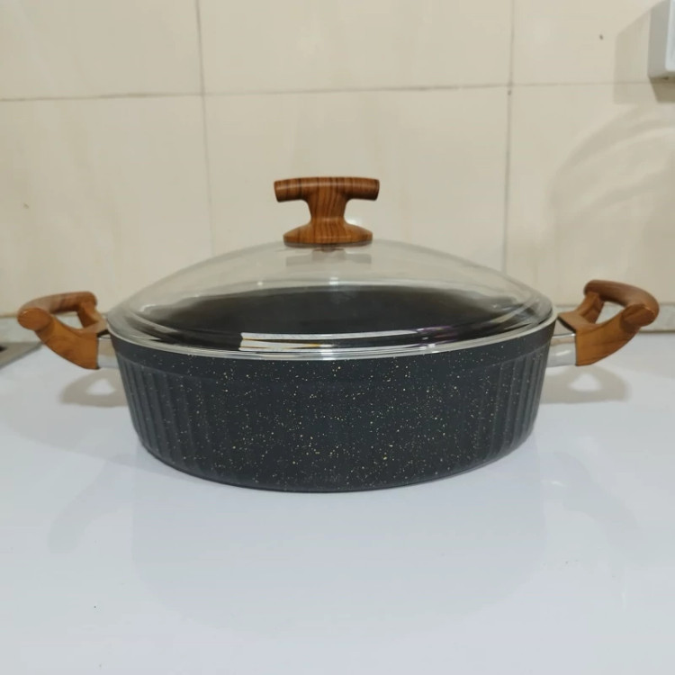 تابه دو دسته گرانیتی سایز 28 EVIZ اویز مدل فورج السا مشکی با ضمانت 12 ماهه