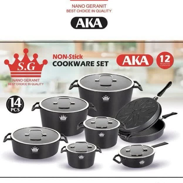 سرویس قابلمه گرانیتی 14 پارچه برند SG مدل AKA مشکی ارسال رایگان