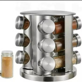 آشپزخانه ادویه گردان از جنس استنلس استیل 12 شیشه ای برای میز آشپزخانه تقویت کنید. این قفسه چرخان ادویه ساخته شده از فولاد ضد زنگ، 12 شیشه را در خود جای می دهد که پر از ادویه جات پر مصرف است. کوزه های موجود در سازمان دهنده ادویه ها از شیشه با درپوش های سفیددارای رویه های الک تر برای پخش آسان و بدون آشفتگی هنگام چاشنی غذا هستند. ادویه های موجود در قفسه ادویه شما ممکن است شامل ریحان، مرزنجوش، نمک سیر، گشنیز، رزماری، پونه کوهی و غیره باشد.
