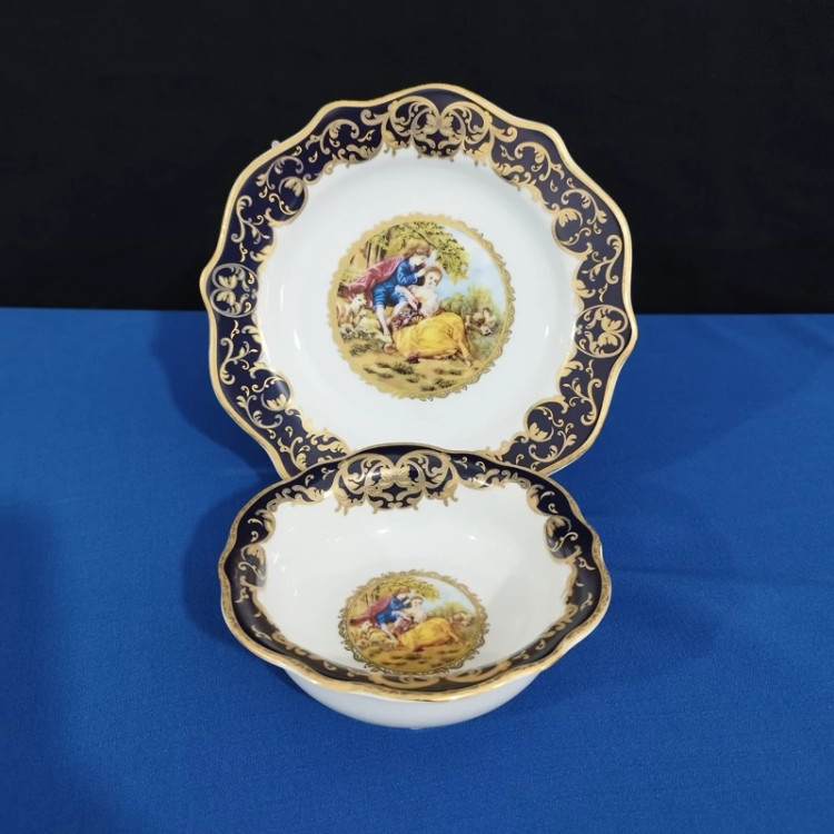 ست پیش دست و پیاله چینی لیلی مجنون سرمه ای کد 8021 و 8019 بسته 6 عددی