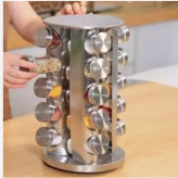 آشپزخانه ادویه گردان از جنس استنلس استیل 20 شیشه ای برای میز آشپزخانه تقویت کنید. این قفسه چرخان ادویه ساخته شده از فولاد ضد زنگ، 20 شیشه را در خود جای می دهد که پر از ادویه جات پر مصرف است. کوزه های موجود در سازمان دهنده ادویه ها از شیشه با درپوش های سفیددارای رویه های الک تر برای پخش آسان و بدون آشفتگی هنگام چاشنی غذا هستند. ادویه های موجود در قفسه ادویه شما ممکن است شامل ریحان، مرزنجوش، نمک سیر، گشنیز، رزماری، پونه کوهی و غیره باشد.