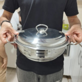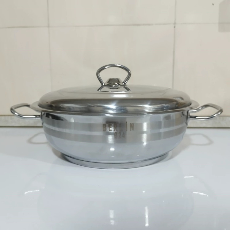 استفاده از ظروف استاندارد برای آشپزی از اصولی است که باید به آن توجه بسیار کرد. تابه های با کیفیت ساخت بالا هیچگونه مادهی اضافی و مضری به غذا وارد نمیکنند و غذایی سالم به شما تحویل میدهند. تابه برلین ساخته شده از استیل ضدزنگ و دارای کیفیت بسیار بالاست. این ست زیبا بهدلیل نداشتن روکش یکی از سالمترین ظروفی است که برای آشپزی مورد استفاده قرار میگیرد. این تابه ها با ورق استیل بسیار ضخیمی تولید شده اند همچنین کفی این قابلمه ها دارای لایه و اصطلاحا کف چدن میباشدکه باعث تنظیم یکنواخت حرارت در سطح تابه شده و مانع از سوختن یا ته کشیدن مواد غذایی در آن میشود مناسب برای انواع اجاق ها از جمله اجاق های القایی قابلیت شستشو در ماشین ظرفشویی هیچ کدام از قسمت های این قابلمه آهنربا را به خود جذب نمیکند دارای جعبه ی شیک و کادویی تولید کشور ترکیه