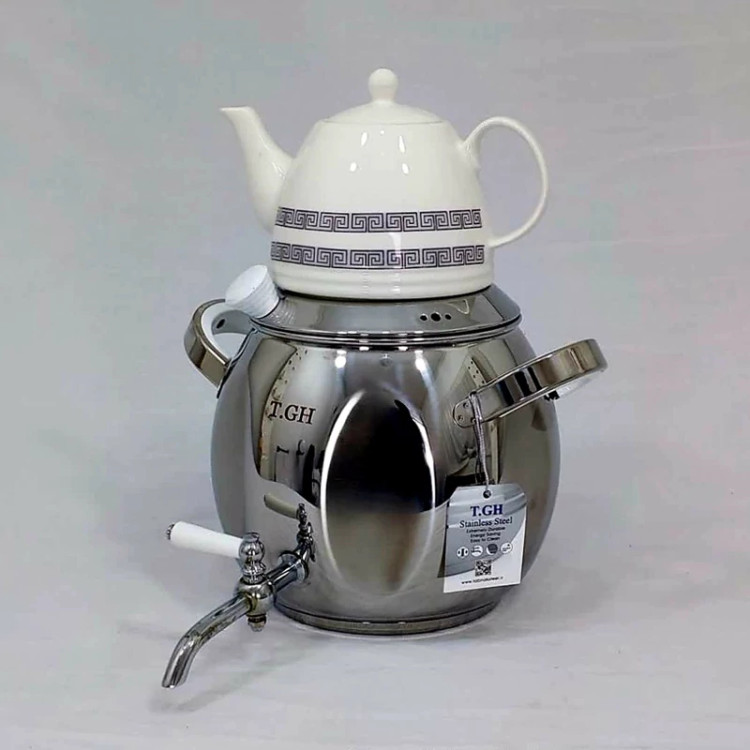 این کتری و قوری دارای وزن تقریبی 2600 گرم می باشد و جنس بدنه کتری از استیل با کیفیت بسیار بالا است.