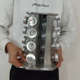 آشپزخانه ادویه گردان از جنس استنلس استیل 16 شیشه ای برای میز آشپزخانه تقویت کنید. این قفسه چرخان ادویه ساخته شده از فولاد ضد زنگ، 16 شیشه را در خود جای می دهد که پر از ادویه جات پر مصرف است. کوزه های موجود در سازمان دهنده ادویه ها از شیشه با درپوش های سفیددارای رویه های الک تر برای پخش آسان و بدون آشفتگی هنگام چاشنی غذا هستند. ادویه های موجود در قفسه ادویه شما ممکن است شامل ریحان، مرزنجوش، نمک سیر، گشنیز، رزماری، پونه کوهی و غیره باشد.