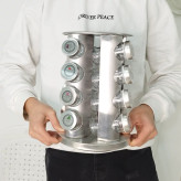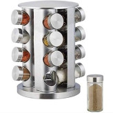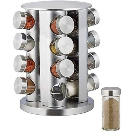 آشپزخانه ادویه گردان از جنس استنلس استیل 16 شیشه ای برای میز آشپزخانه تقویت کنید. این قفسه چرخان ادویه ساخته شده از فولاد ضد زنگ، 16 شیشه را در خود جای می دهد که پر از ادویه جات پر مصرف است. کوزه های موجود در سازمان دهنده ادویه ها از شیشه با درپوش های سفیددارای رویه های الک تر برای پخش آسان و بدون آشفتگی هنگام چاشنی غذا هستند. ادویه های موجود در قفسه ادویه شما ممکن است شامل ریحان، مرزنجوش، نمک سیر، گشنیز، رزماری، پونه کوهی و غیره باشد.
