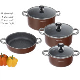 سرویس قابلمه گرانیتی 7 پارچه کاج تفلون مدل دالیا قهوه ای با ضمانت 18 ماهه