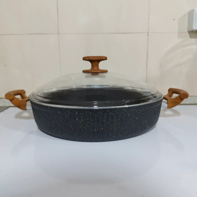 تابه های 32 سانت برند Eviz در طرح السا مشکی با دسته ای از جنس باکالیت نسوز که طراحی شبیه به چوب دارد و باعث زیبایی چندین برابری این تابه ی پر کاربرد شده تخت لیسانس کشور ترکیه جنس بدنه از آلومینیوم و پوشش داخلی از گرانیت که به شیوه ی فورج تهیه شده ابعاد تابه : قطر دهانه ی تابه 32 سانت طول تابه با دسته 46 سانت ارتفاع و عمق تابه 7.5 سانت دارای ضمانت 12 ماهه با ارسال رایگان به سراسر کشور با ضمانت تحویل سالم کالا