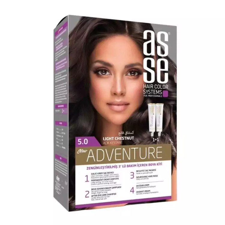 رنگ مو بدون آمونیاک آسه asse بلوطی روشن شماره 5.0 دو تیوپ حجم 50 میل