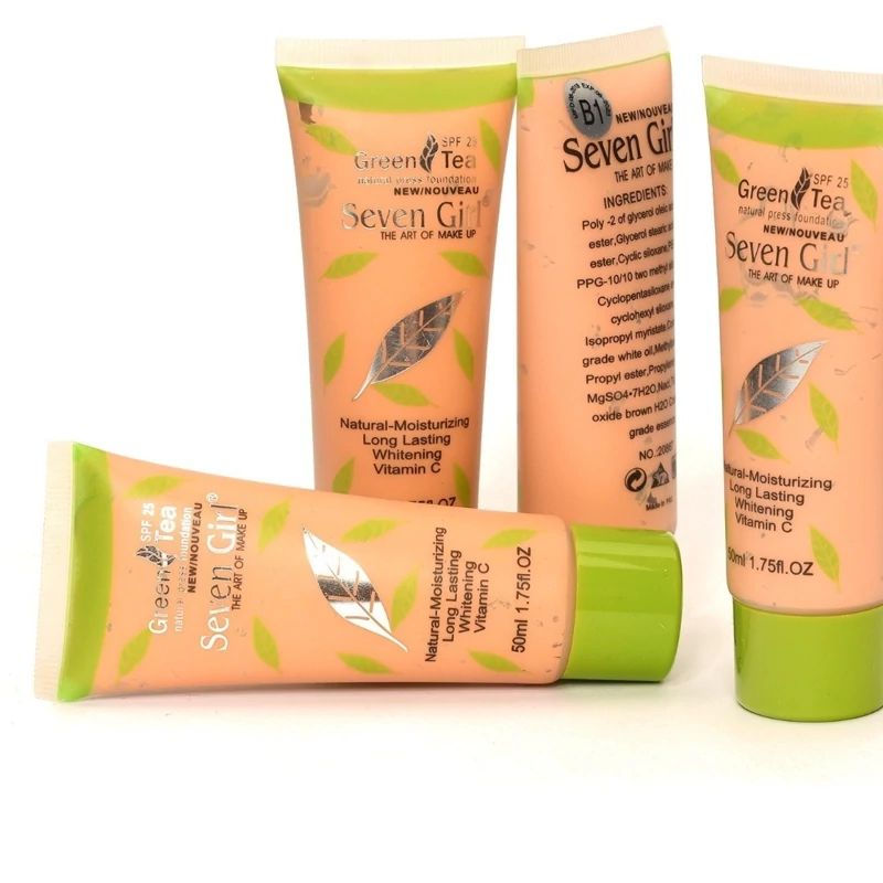 کرم پودر گیاهی چای سبز سون گیرل seven girl b1کرمپودر سون گرل چای سبز حاوی ضدآفتاب بهترین کرم پودر تیوپی سبز Sevengirl