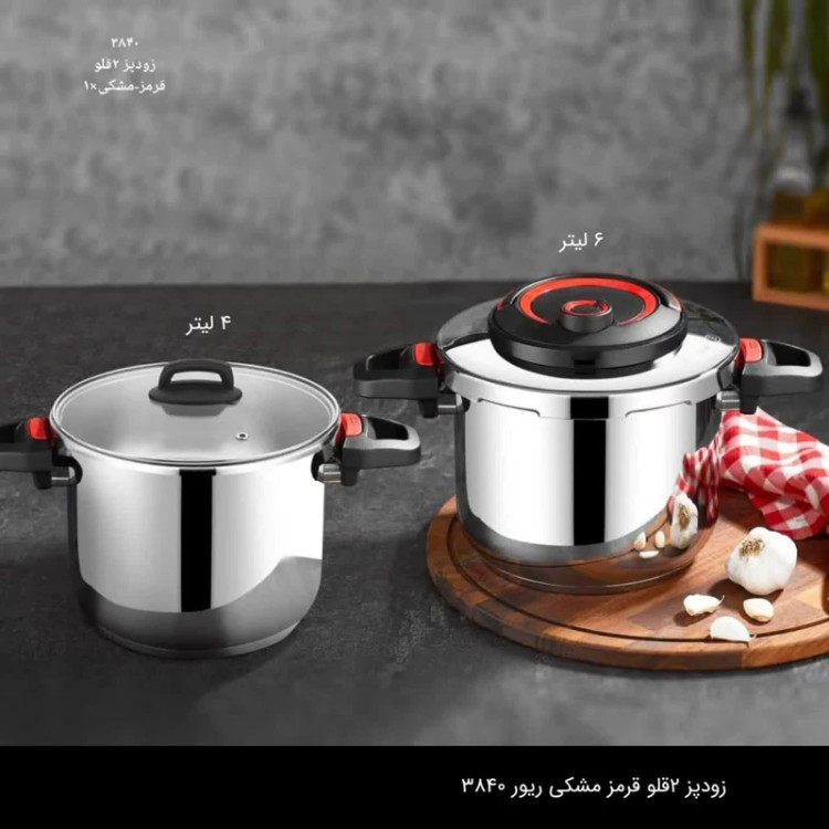 زودپز دوقلو استیل مشکی قرمز ریور کد 3840