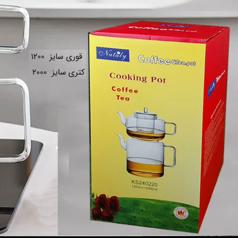 کتری و قوری پیرکس NATALY ناتالی مدل شامپاینی کد 240220A شعله مستقیم ارسال رایگان