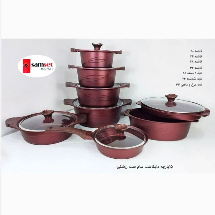 سرویس قابلمه گرانیتی 15 پارچه SAMSET سام ست زرشکی