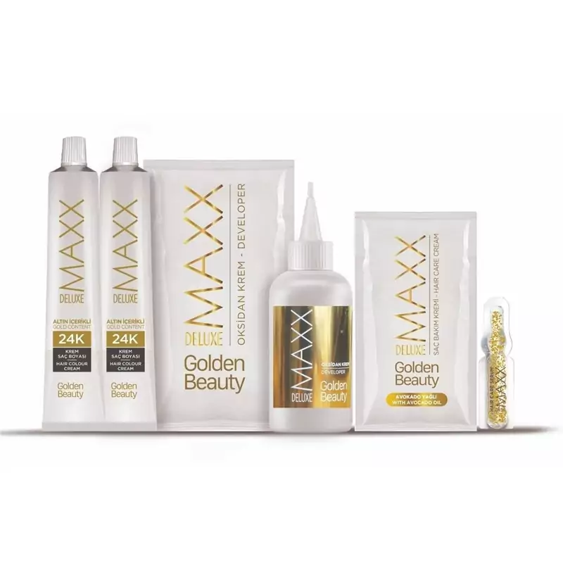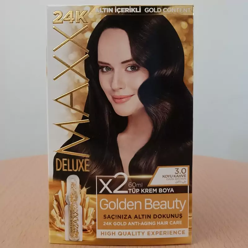 کیت رنگ مو Maxx Deluxe سری Golden Beauty شماره 3.0 پایه رنگ قهوه ای تیره