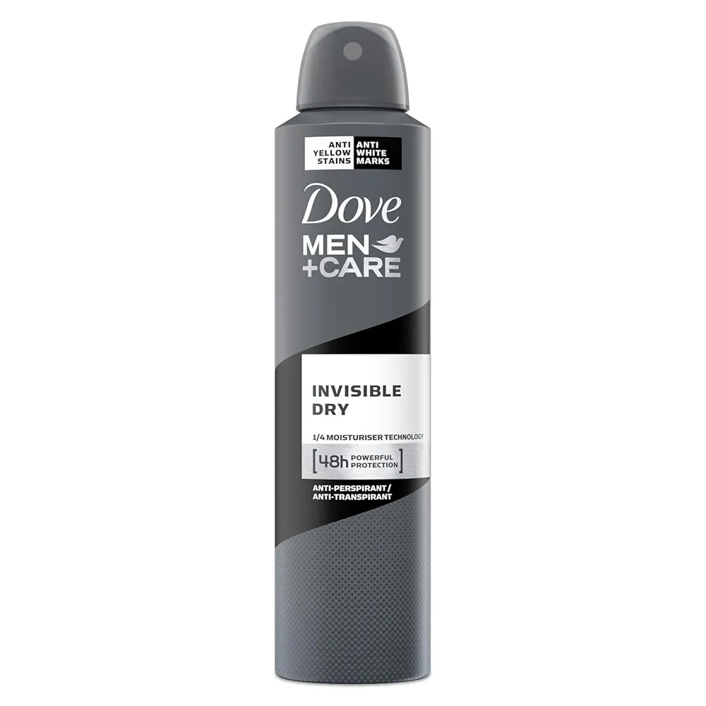 اسپری ضد تعریق مردانه داو مدل Invisible dry حجم 250 میل که برای آقایان طراحی شده. این محصول با استفاده از فناوریهای پیشرفته، به محافظت از پوست زیر بغل کمک میکند و هدف اصلی آن جلوگیری از ایجاد لکههای سفید روی لباسهای تیره و لکههای زرد روی لباسهای روشن است.