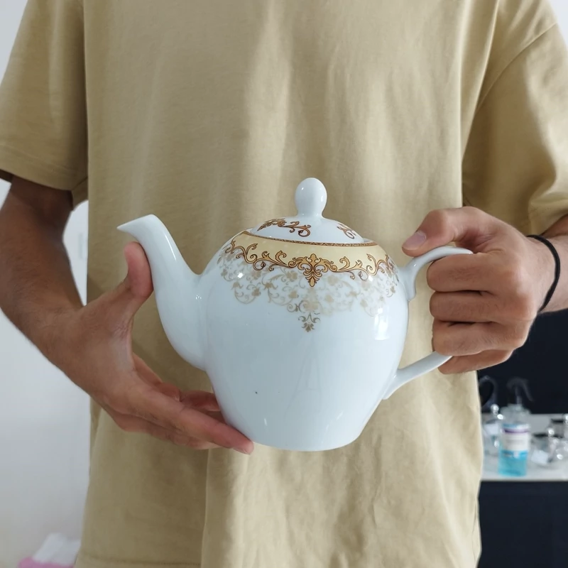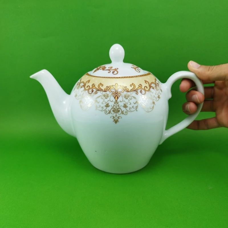 قوری چینی گلدیس مدل صدفی طلایی بزرگ