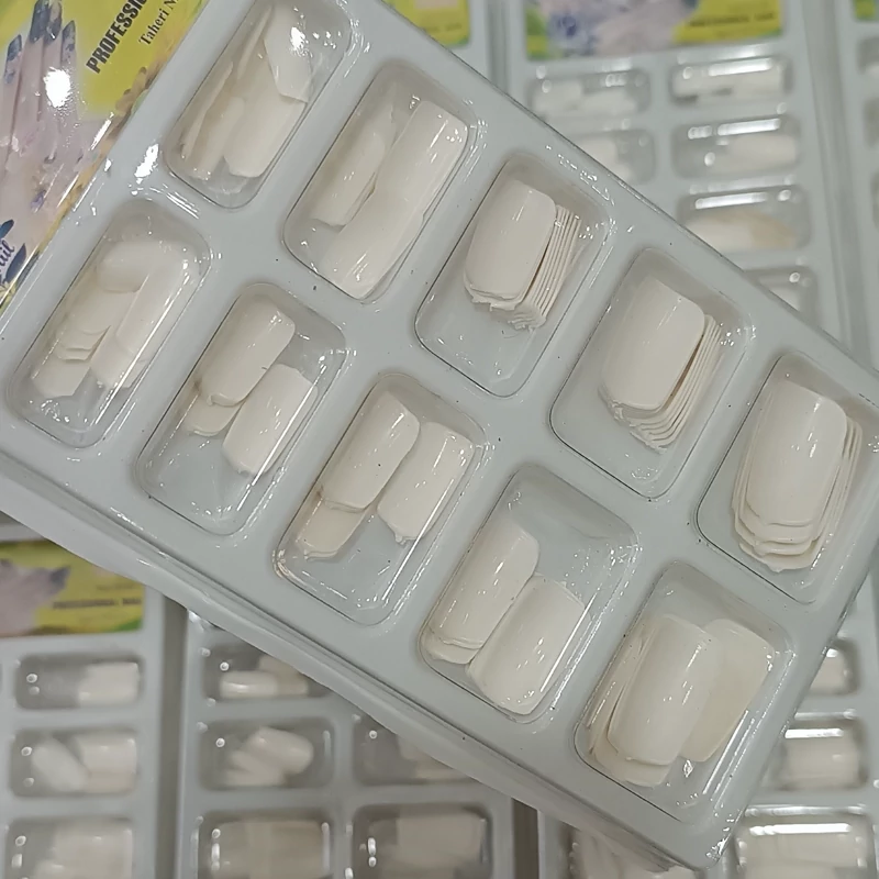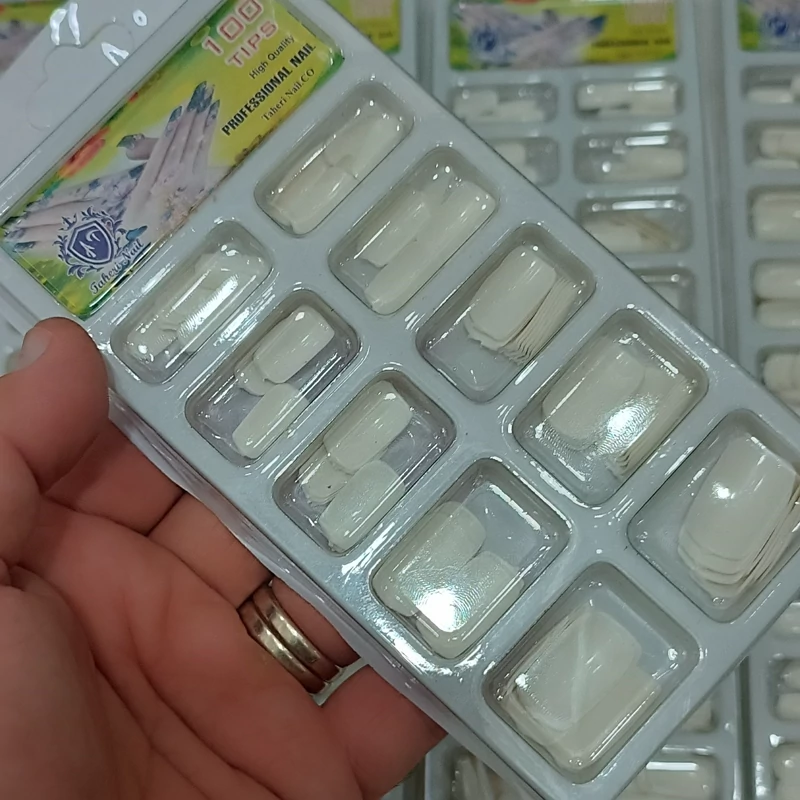 ناخن مصنوعی 100 عددی سر صاف شیری رنگ ناخون مصنوعی ساده