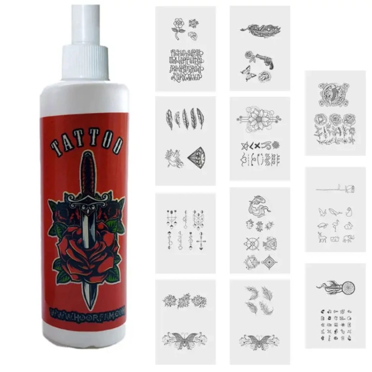 فقط کافیه طرحی رو کپی کنید و اسپری رو روی پوست تمیز و خشک بپاشید و بلافاصله طرح رو روی محل قرار بدین تا طرح روی پوستتون چاپ بشه