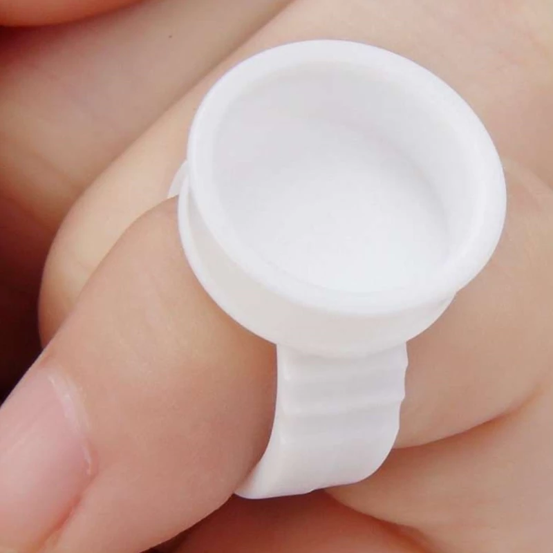 تشتگ انگشتی بسته 100 عددی جای چسب مژه انگشتری جای رنگ تاتو انگشتر رنگ تتو تشتک چسب مژه مواد کاشت مژه ریسه ای موجوده