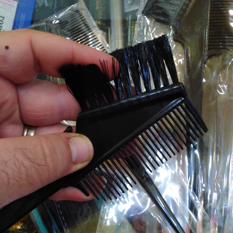 فرچه قلمو رنگ مو دو طرفه دم باریک چند منظوره کیفیت عالی مناسب استفاده حرفه ای انواع رنگ مو دکلره و سایر ملزومات آرایشگاهی و سالنی داخل غرفه موجوده