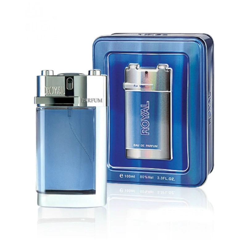 ادکلن رویال فلزی اصلی 100 میل عطر رویال آبی royal sellion پرفیوم قدیمی اودکلن رویال قوطی فلزی ادکلن رویال آبی کادو مرد