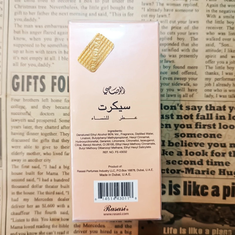 ادکلن سکرت رصاصی زنانه اورجینال secret rasasi اودکلن Secret عطر سیکرت