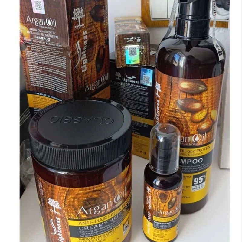 پک سه تایی شامپو، ماسک و روغن آرگان لایتنس اصلی راز ابریشمی کردن مو شامپو 900 میل ماسک 1000 میل روغن آرگان 100 میل