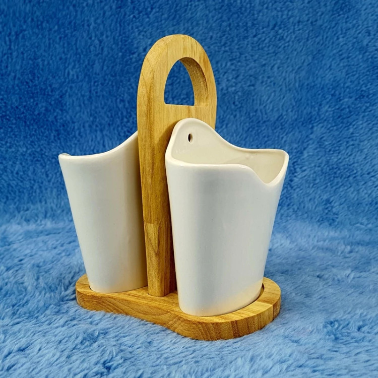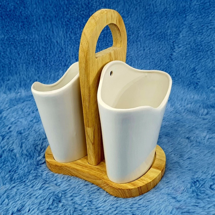 جا قاشق چنگال دو قلو سرامیک با استند بامبو کد 2076 ارسال رایگان