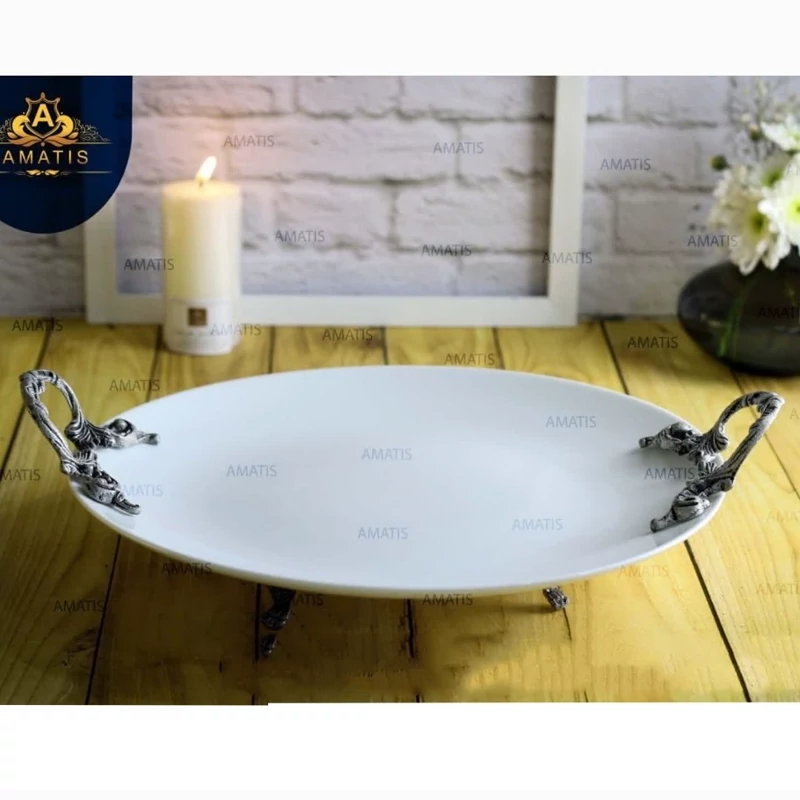 دیس تخت گرد سرامیک 32 سانت آماتیس دسته پیوتر کد 2050 ارسال رایگان