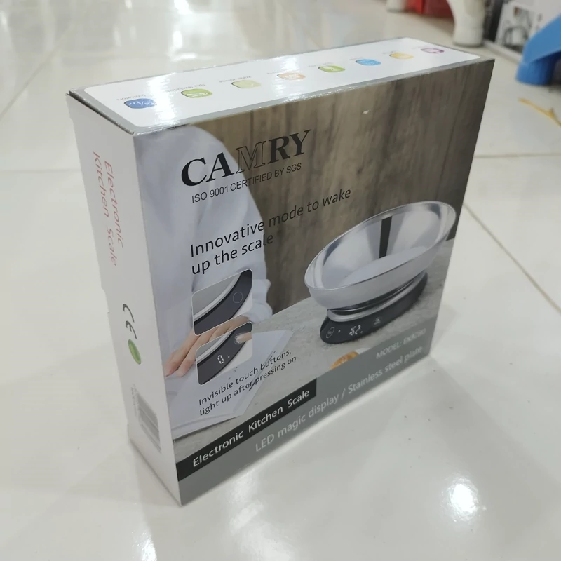 ترازوی آشپزخانه CAMRY اورجینال مدل 3280 با دقت بالا و ظاهری بسیار مدرن و زیبا ، و با دقت اندازه گیری عالی و استفادهی آسان بهعنوان وسیلهای بسیار کاربردی در خانه ها و قنادی ها رستورانها و غیره که باری بیشتر از 5 کیلو را وزن نمیکنند استفاده میشود. صفحه نمایشگر این ترازو از نوع led سفید یخی بوده که در هنگام روشن شدن آن ، اعداد به زیبایی و با وضوح بسیار بالا نمایان میشوند و این موجب توانایی خواندن اعداد در محیط های بسته و حتی تاریک میشود. این ترازو دارای کاسه ای از جنس استیل مرغوب و دارای روکش ضد اثر انگشت بوده و بدنه ترازو مشکی رنگ است . بیشترین وزن قابل تحمل این دستگاه 5 کیلو گرم است و وزن را بر اساس واحد کیلوگرم یا پوند اندازهگیری میکند و همچنین دقت اندازهگیری آن (حساسیت) 1 گرم است. به این معنی که توان تشخیص تغییرات وزن بیش از 1 گرم را دارد. همچنین این ترازو قابلیت اندازه گیری حجم مایعات (آب و شیر )را هم دارد و با فشردن کشید مربوطه امکان تغییر آن از حالت سنجش وزن به سنجش آب برحسب میلی لیتر و همچنین سنجش شیر بر حسب میلی لیتر امکانپذیر است. منبع تغذیهی مدل «3280» سه عدد باتری 1.5 ولت است.از نقاط مثبت این ترازو میتوان به دارا بودن کاسه استیل و شکل ظاهری مدرن و جدید آن گفت که در صورت نیاز میتوانید کاسه را از روی آن برداشته و با قابلیت صفر کن ترازو ، وزن پیمانه تان را صفر کرده و از پیمانه یا ظرف دیگری استفاده کنید .توجه داشته باشید که برای اندازهگیری دقیق وزن، باید ترازو روی سطح سخت و صاف و بدون ناهمواری قرار بگیرد.لازم به ذکر است که ترازوی فوق بدون باتری ارسال میشود. سرعت بالا در سنجش و برگشت به صفر ، دقت 1 گرم ،قابلیت صفر کردن (پارسنگ) ، راحتی کار با آن و دقت بسیار بالا و حذف کلید های فشاری که به مرور زمان موجب فرسودگی میشوند و جایگزینی کلید های لمسی با عملکرد دقیق و قابل اعتماد ، از محاسن ویژه ترازوی فوق میباشد. بدون شک ترازوی فوق از لحاظ کیفی قابل رقابت با سایر برند های موجود بوده و دستگاهی کارآمد ، زیبا ، دقیق ، پایدار و وفادار در وزنکشی می باشد.
