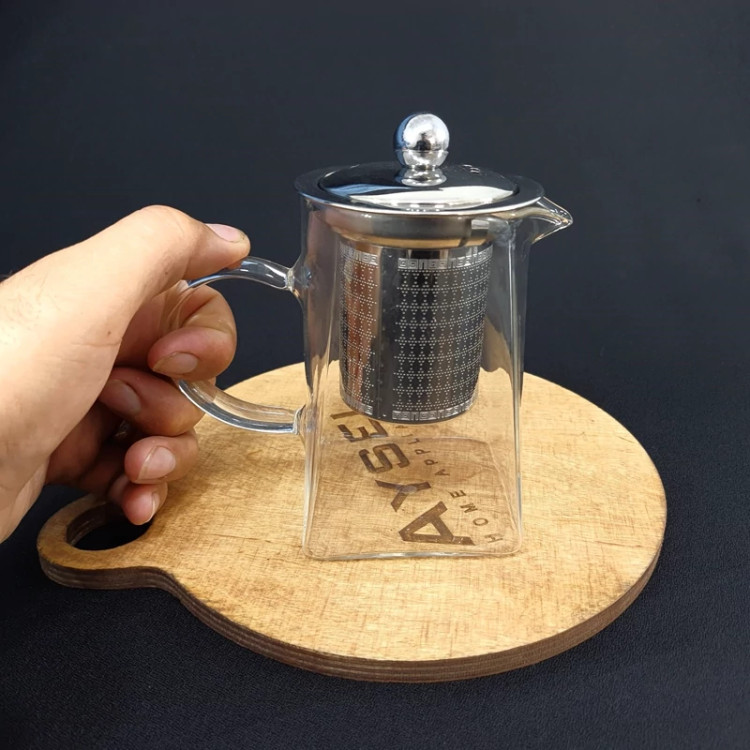 قوری مربع پیرکس 500 میلی لیتر با صافی استیل با ارسال رایگان