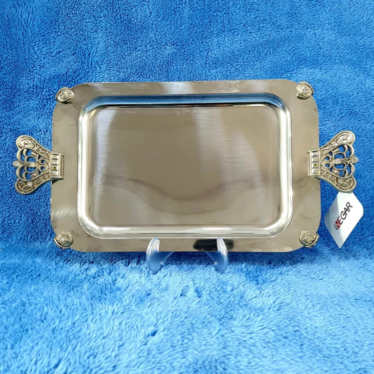 سینی استیل نگار مستطیل کوچک کد 326 مدل تاج با ارسال رایگان
