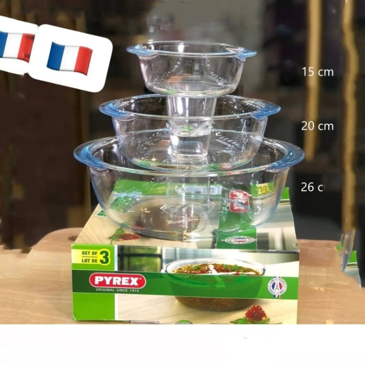 سه تابه گرد بدون درب پیرکس اصل فرانسه در 3 سایز