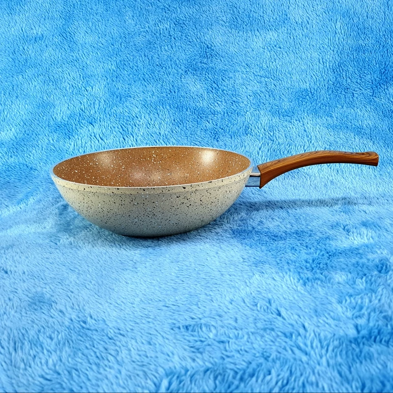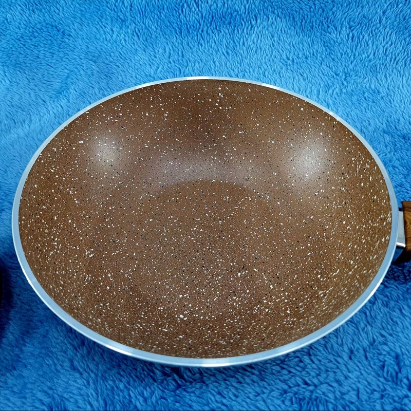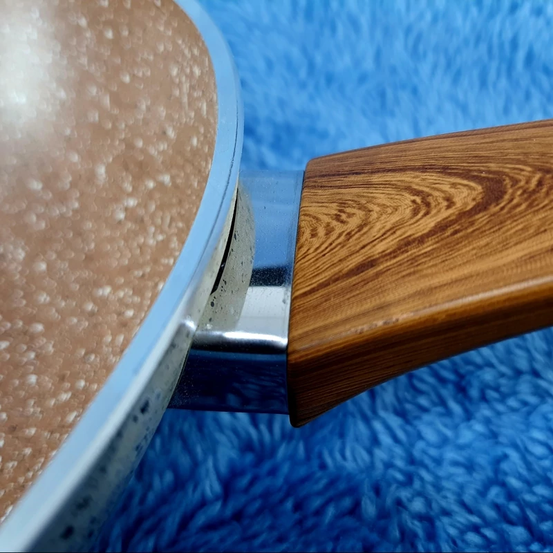 با دسته ای از جنس باکالیت نسوز که طراحی شبیه به چوب دارد و باعث زیبایی چندین برابری این تابه ی پر کاربرد شده