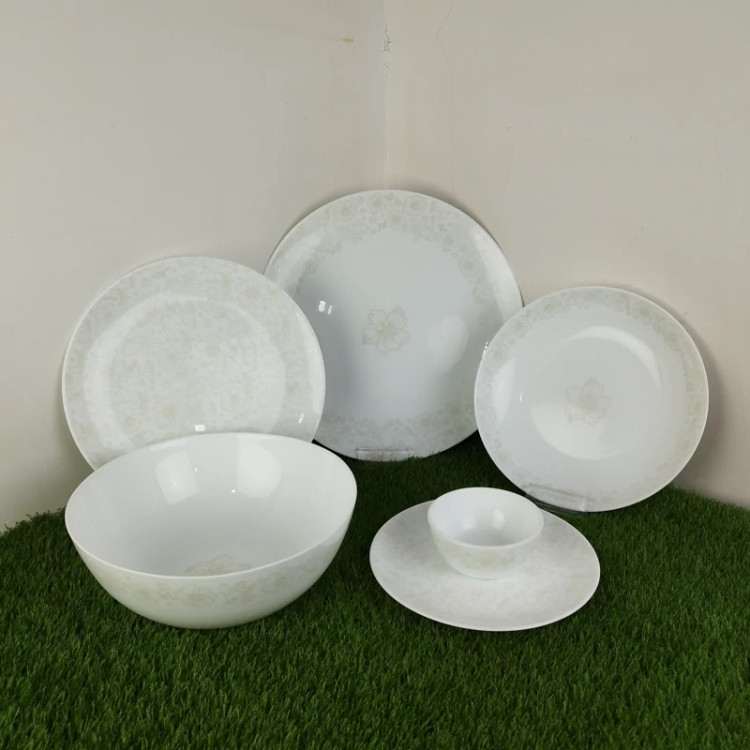 سرویس آرکوپال 26 پارچه مدل گرد طرح آنانیا کرم یک سرویس آرکوپال تولید ایران می باشد که با یک قالب جدید در طرح و نقشی بسیار زیبا به سبک سرویس های اوپال اسپانیایی تولید شده این ظروف قابلیت تحمل دمای بالایی را دارند به همین دلیل قابلیت قرارگیری در مایکروویو را دارا می باشند همچنین این ظروف قابلیت شستشو در ماشین ظرفشویی را نیز دارند این سرویس شامل: 6 عدد بشقاب تخت برنج خوری 6 عدد بشقاب گود خورش خوری 6 عدد پیش دستی دسر خوری 6 عدد پیاله ماست خوری 1 عدد دیس 1 عدد کاسه سالاد بزرگ می باشد که در یک بسته بندی بسیار زیبا و با دوام قرار میگیرد