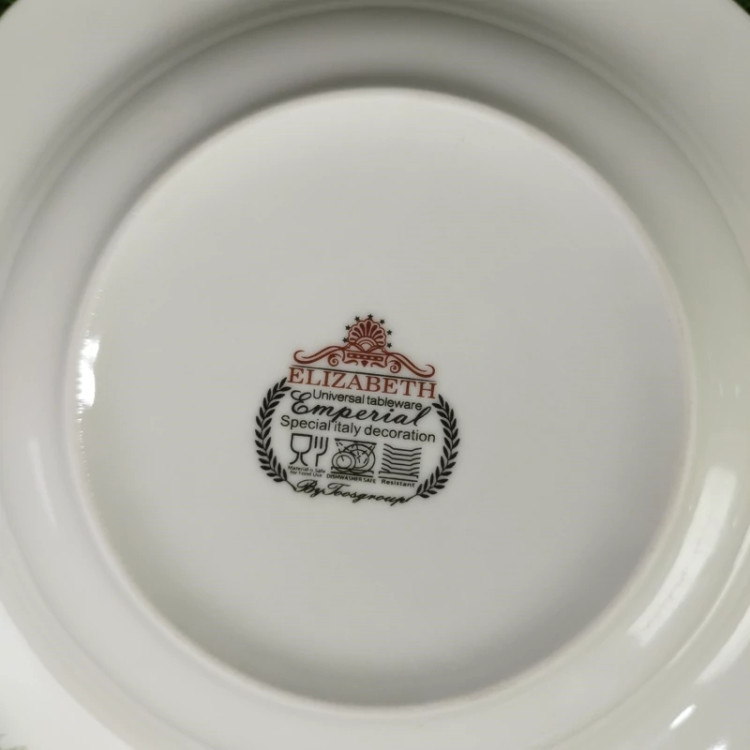 بشقاب خورشت خوری چینی توس برند الیزابت مدل امپریال خط طلا 24 سانت بسته 6 عددی با ارسال رایگان