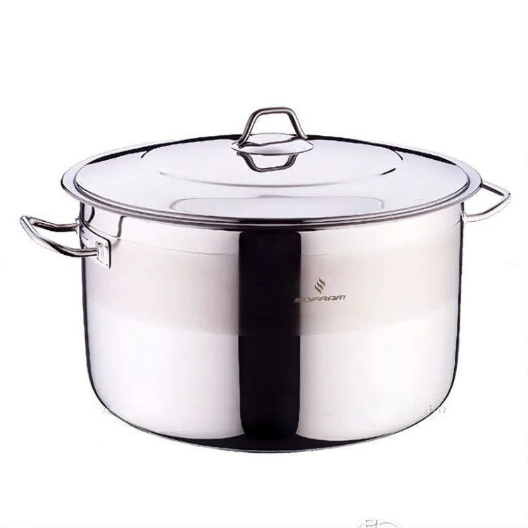 یک قابلمه استیل سایز بزرگ می باشد. که سطح صاف و محکم قابلمه استیل سوفرام SOFRAM باعث میشود که احتمال پوسته پوسته شدن، شکستن یا نشت کردن آنها کاهش یابد و به دلیل اینکه قابلمه استیل سایز بزرگ دارای ساختار چند لایه ای نیست. هنگام همزدن غذا با استفاده از قاشق های فلزی و چوبی لازم نیست نگران جدا شدن لایه های قابلمه و ترکیب آن با غذا شوید. قابلمه استیل خوب به این خاطر که برخی از فنون آشپزی تنها در آنها قابل اجراست، میان آشپزها محبوب می باشد و ابزاری حرفهای به شمار میروند. البته ظروف استیل هم مانند هر ابزار حرفه ای دیگری نیاز به توجه و مراقبت حرفهای دارند. یکی از موارد مهمی که در زمان استفاده از این ظروف باید در نظر گرفت، شستشوی آنها بدون استفاده از مواد شیمیایی (مانند مایع ظرفشویی و پودر ماشین ظرفشویی) است. ایم قابلمه گمجایشی برابر با 28 لیتر دارد. بنابراین این سایز قابلمه استیل مناسب برای پخت و پر برای چند نفر می باشد.