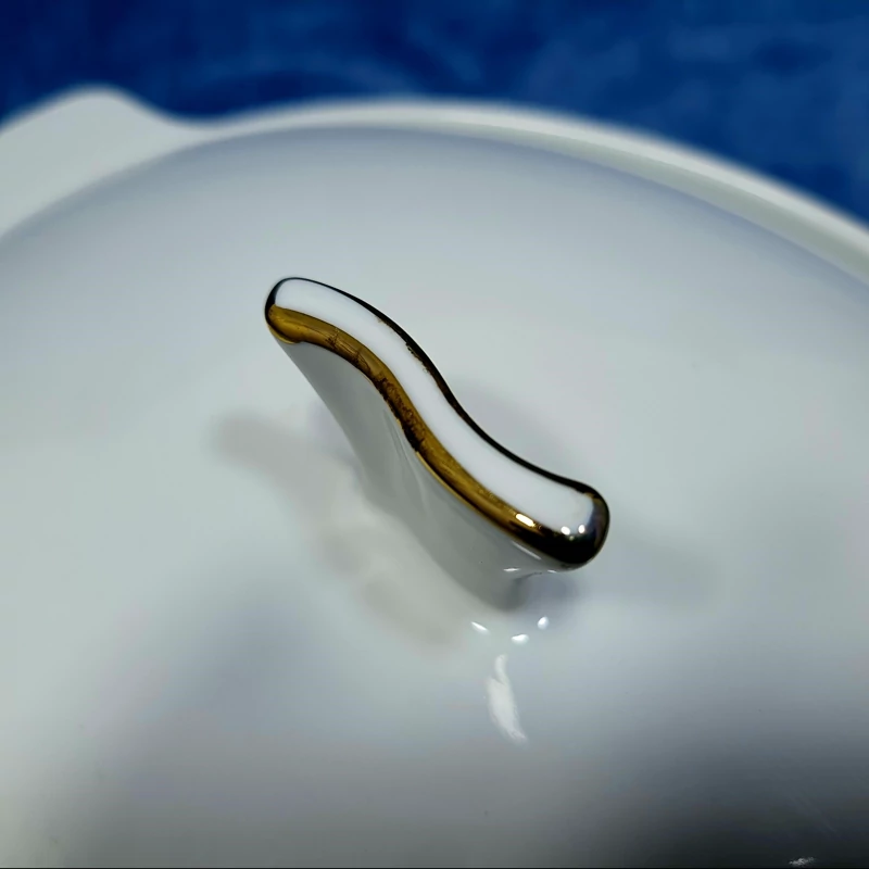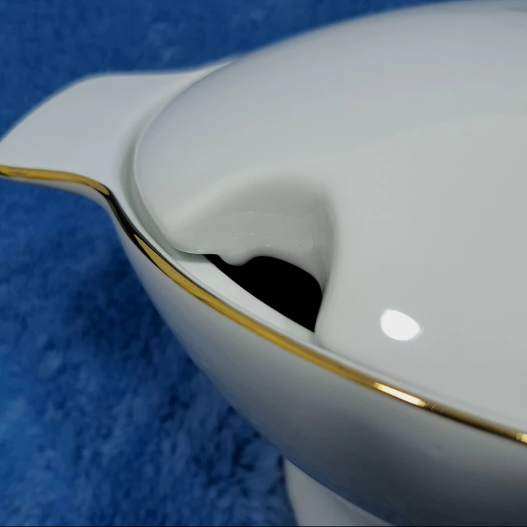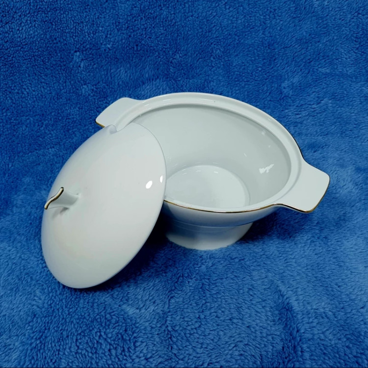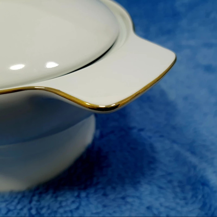 سوپ خوری درب دار چینی گرد لورین مدل دیپلمات لب طلا