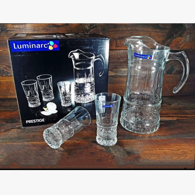 ست پارچ و لیوان هفت پارچه لومینارک مدل پرستیژ که شامل یک پارچ و شش عدد لیوان است که با جنسی از شیشه و کیفیت ساخت بسیار مرغوب توانسته خود را در خانه ها جای دهد و پای ثابت سفره ها شود